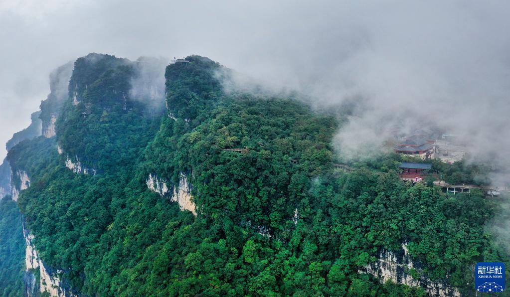 9月2日拍摄的云雾缭绕的龙头山景区(无人机照片)。新华社记者 陶明 摄