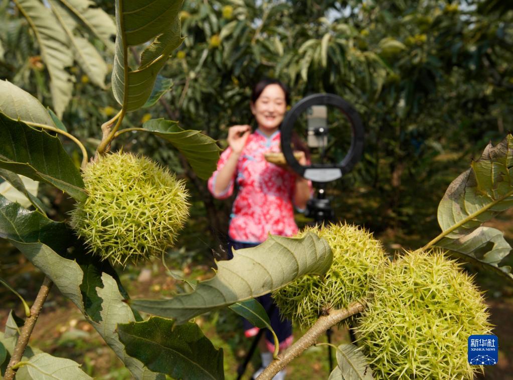 进入九月,河北省遵化市的板栗进入成熟、收获的季节,当地农民抓紧进行收获、剥栗蓬、直播销售和板栗加工等工作,山乡一片忙碌景象。