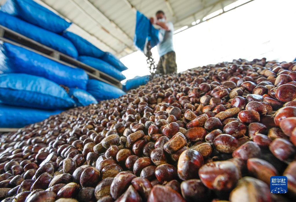 进入九月,河北省遵化市的板栗进入成熟、收获的季节,当地农民抓紧进行收获、剥栗蓬、直播销售和板栗加工等工作,山乡一片忙碌景象。