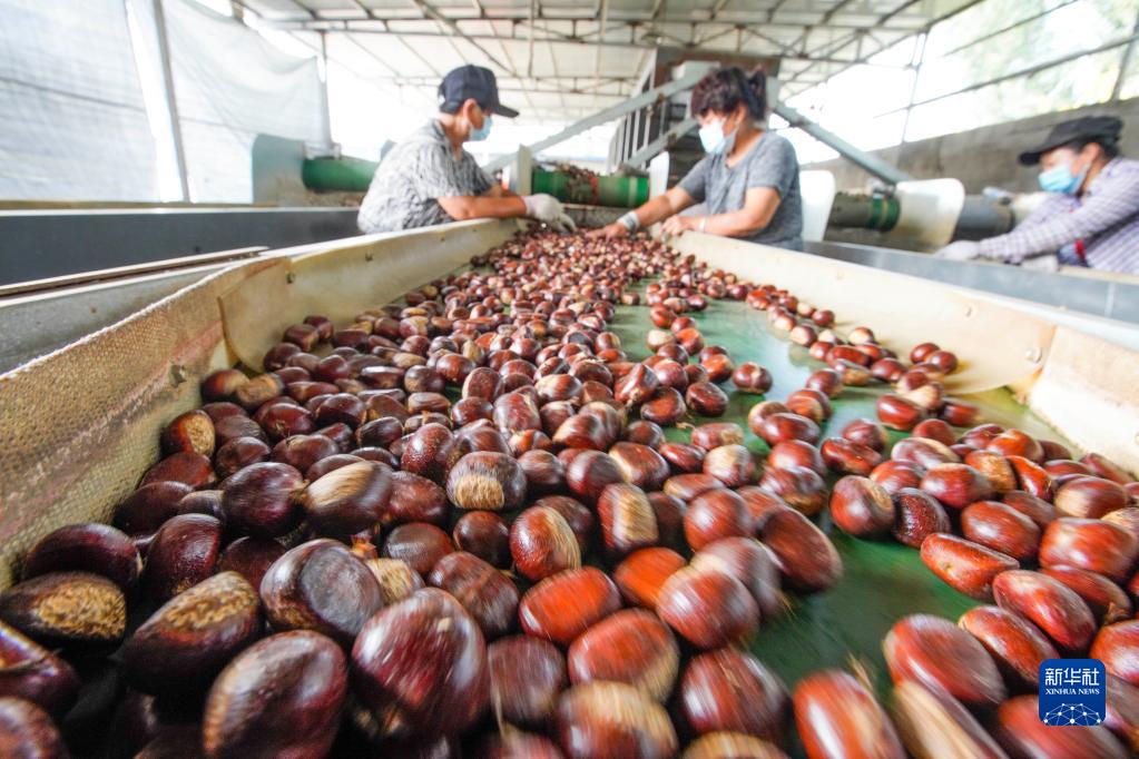 进入九月,河北省遵化市的板栗进入成熟、收获的季节,当地农民抓紧进行收获、剥栗蓬、直播销售和板栗加工等工作,山乡一片忙碌景象。