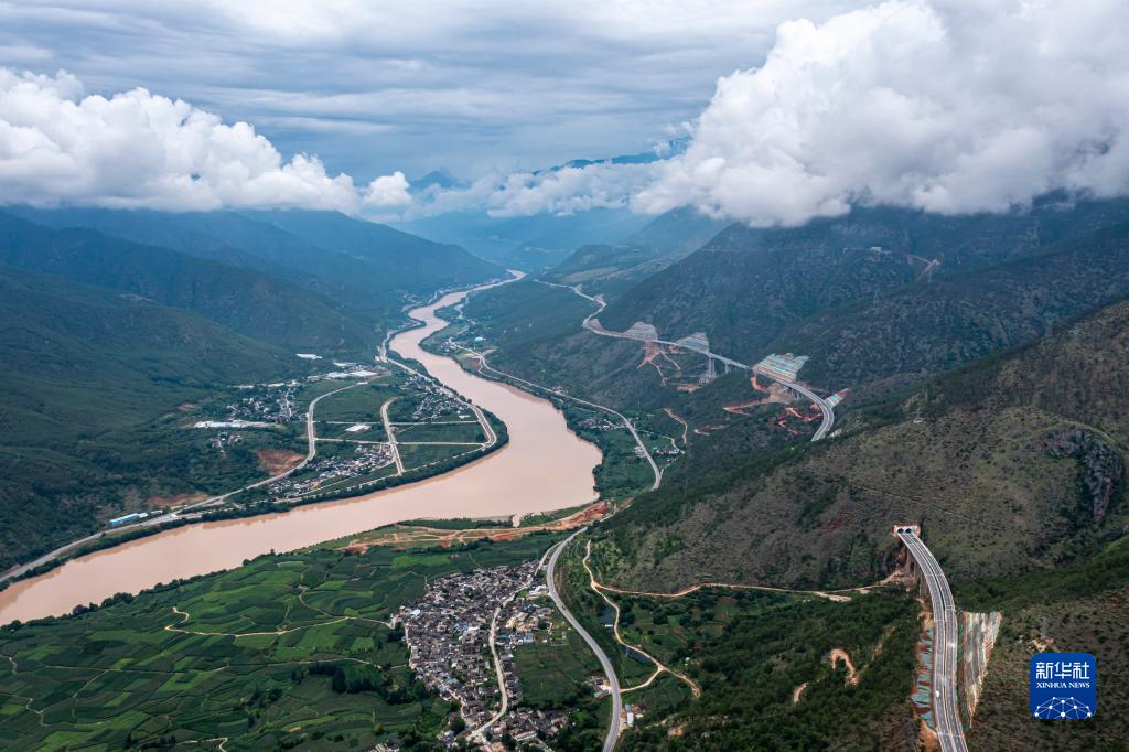 丽江至香格里拉的高速与金沙江伴行(7月21日摄,无人机照片)。