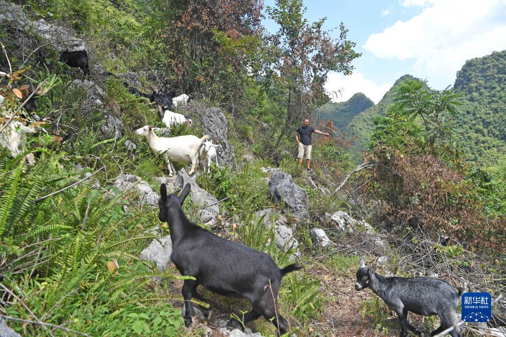 9月3日,在都安瑶族自治县大兴镇池花村加后屯,一名村民在山上放羊。