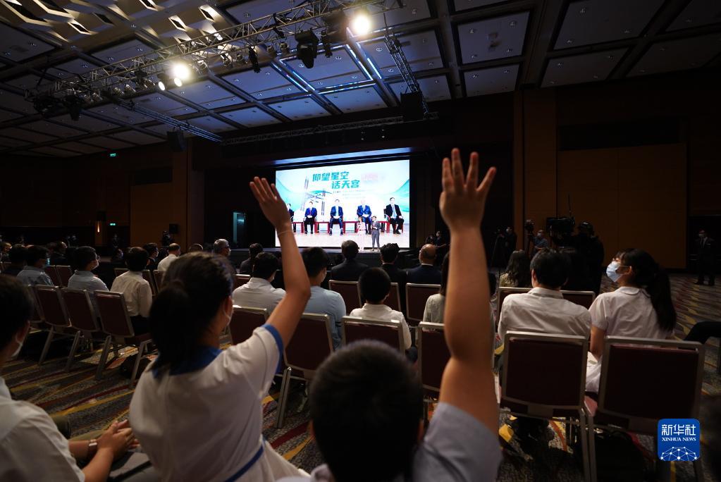 9月3日,在香港会场,香港青年学生代表向北京航天专家连线提问。