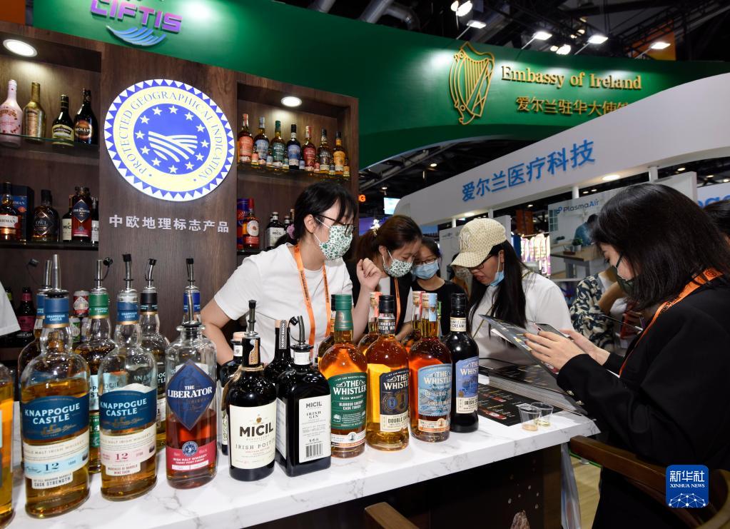 9月3日,工作人员在2021中国国际服务贸易交易会国别展区的爱尔兰展台介绍当地特色的酒类产品。