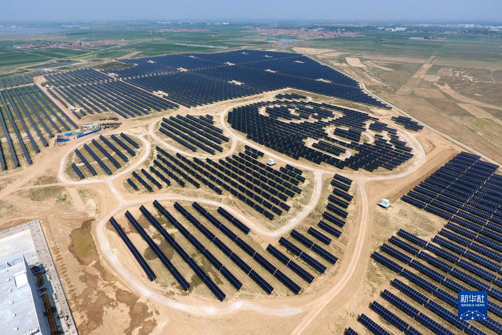 这是位于山西省大同市云州区的熊猫造型光伏电站(2017年7月18日摄,无人机照片)。新华社记者 詹彦 摄