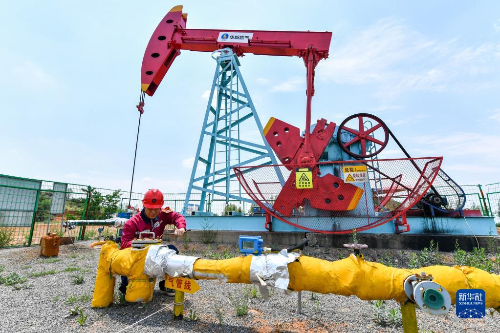 6月22日,华新燃气山西煤层气(煤系气)勘查开发有限公司工作人员在山西省晋中市榆社县的一处排采现场进行井口维护。新华社记者 曹阳 摄