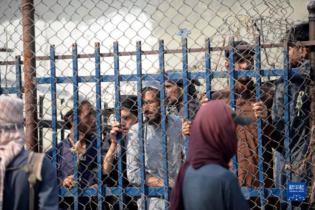 9月3日,阿富汗民众在巴基斯坦与阿富汗的边境口岸多尔哈姆等待过境。新华社发(艾哈迈德·卡迈勒 摄)
