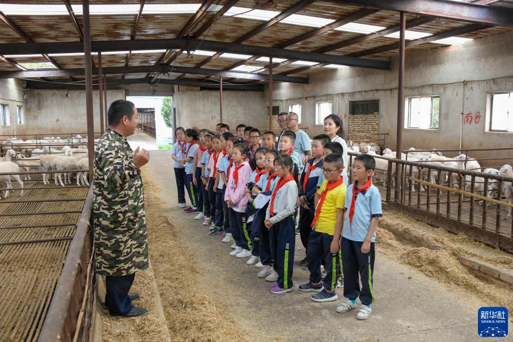 传统非遗扎染、肉羊养殖场、中药材“百草园”……学生们乘坐校车,仅一下午时间,就“打卡”多个校外实践基地。通过走进田野、深入社会,学生们接受了丰富多彩的主题教育。