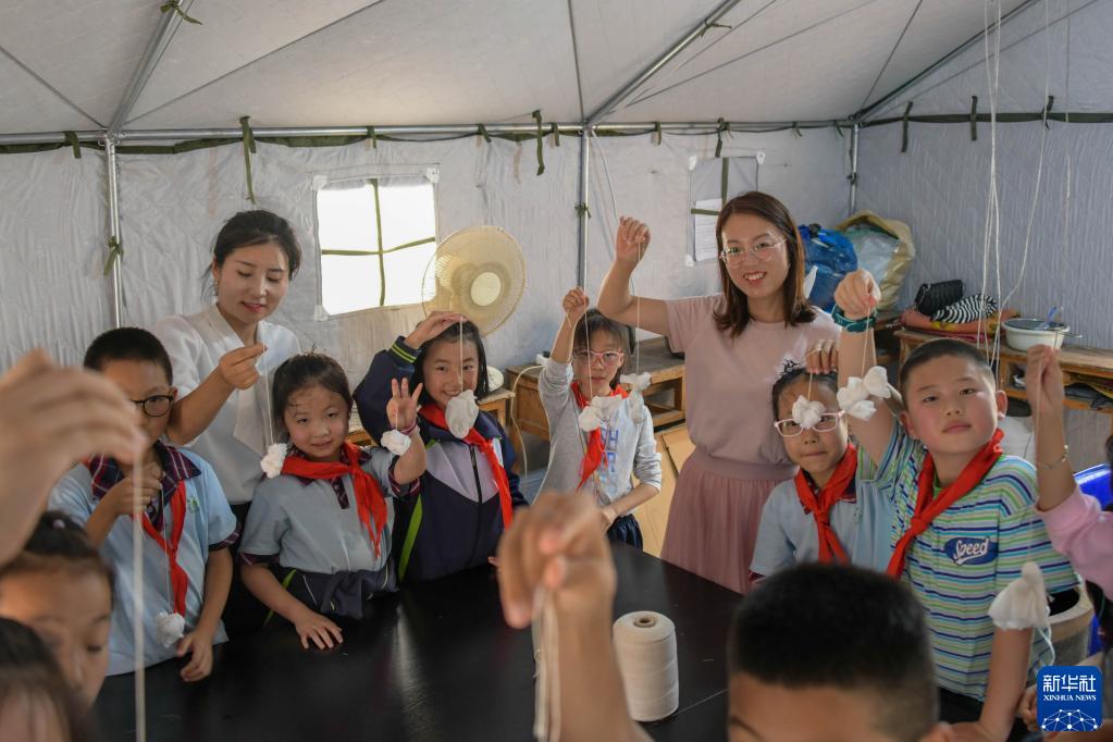 9月2日,胡家大院扎染体验馆的工作人员辅导渭州学校的学生们体验扎染。