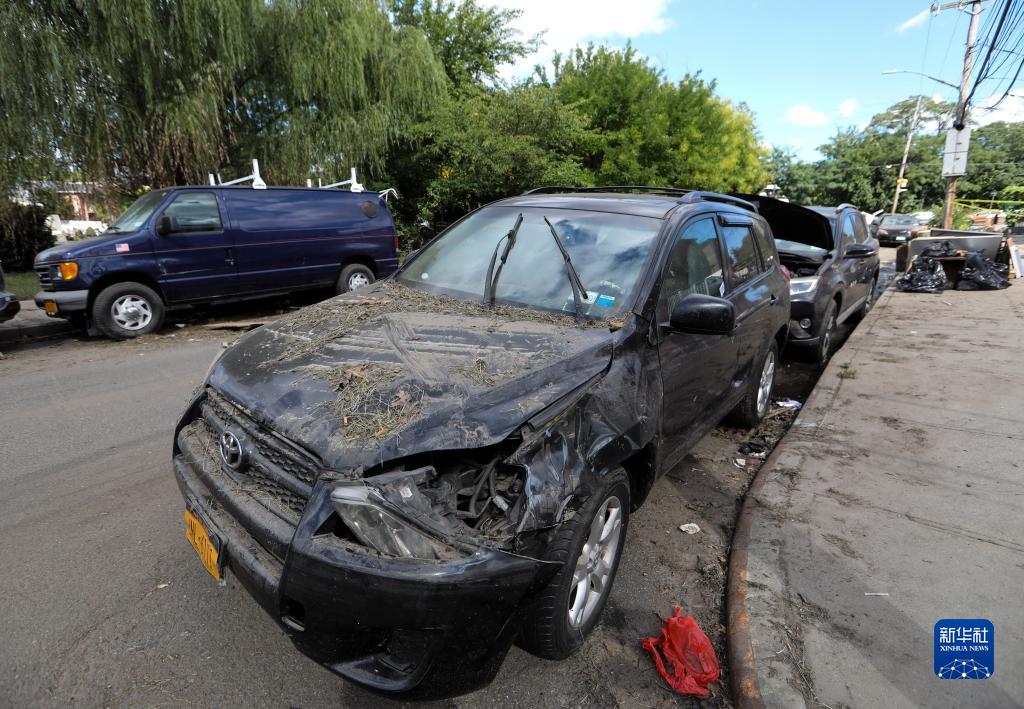 这是9月3日在美国纽约昆斯区拍摄的被损毁的汽车。