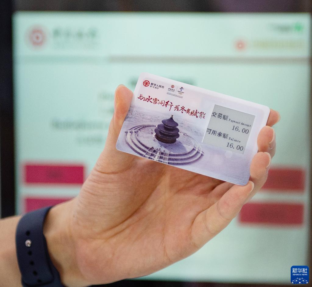 9月4日,工作人员在国家会议中心展区中国银行展位展示数字人民币“硬钱包”。