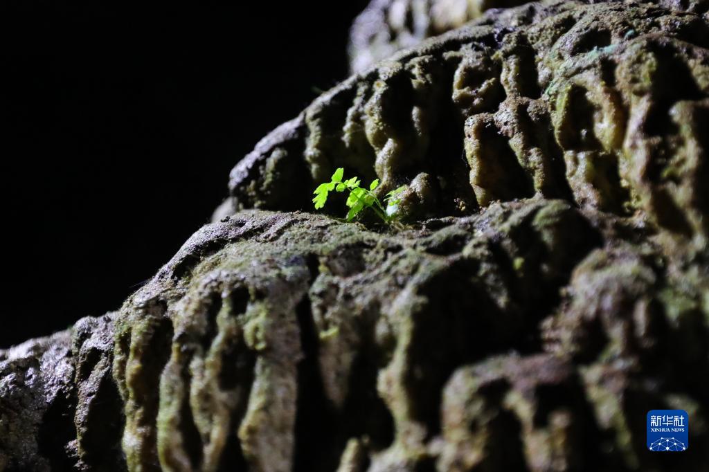 这是9月4日在比利时那慕尔省莱斯河畔昂村拍摄的生长在汉溶洞内的植物。