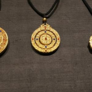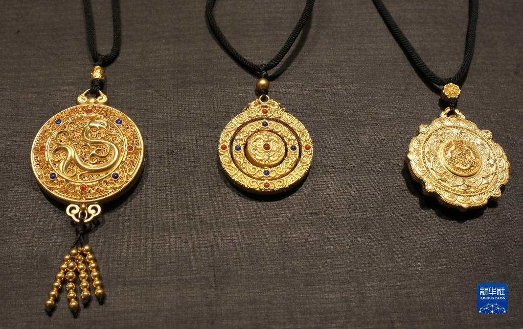 周大福生产的部分“传承”系列金饰,该系列饰品采用传统工艺,手工打磨(9月1日摄)。
