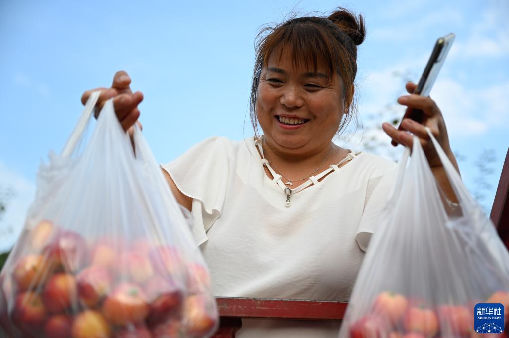 9月4日,在内蒙古兴安盟突泉县学田乡,农民将采摘的沙果放入车斗内。