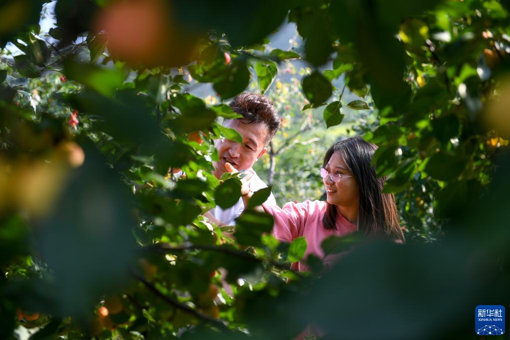 9月4日,游客在内蒙古兴安盟突泉县学田乡林果地中采摘沙果。