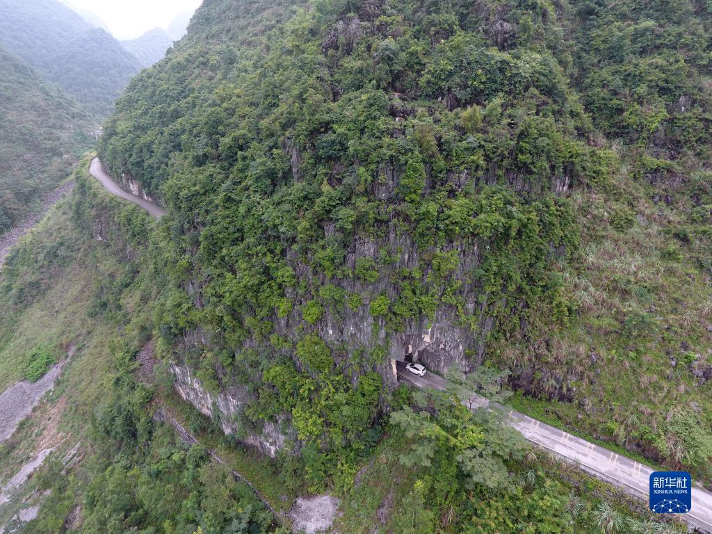这是广西都安瑶族自治县澄江镇境内的山区公路隧道(2017年8月2日摄,无人机照片)。新华社记者 陆波岸 摄