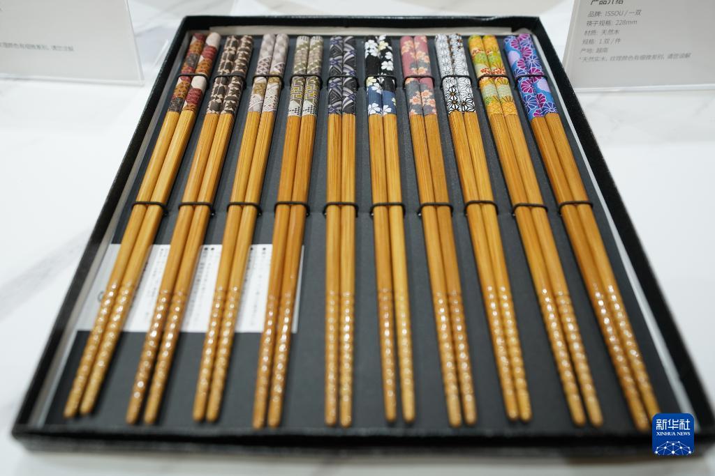 这是9月5日在服贸会国家会议中心国别展区日本展台拍摄的日式尖头防滑料理筷子。