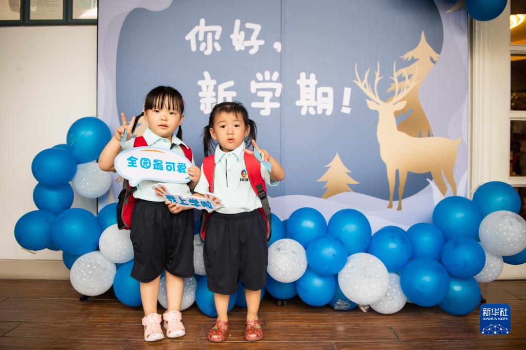 9月6日,在湖南省长沙市长沙县一家幼儿园,两名学生合影。