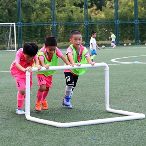 9月4日,广州市二沙岛体育公园内,孩子们在推球门架。新华社记者 黄国保 摄