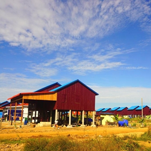 8月27日,柬埔寨上丁省桑河二级水电站移民村的村民坐在家中。新华社发(桑河二级水电有限公司供图)