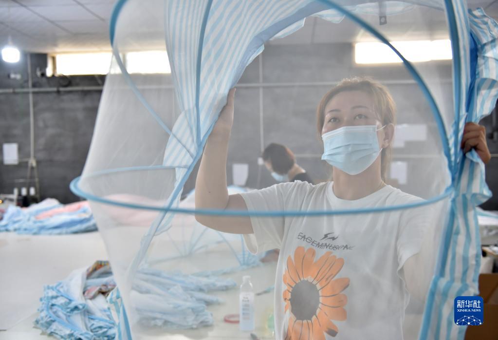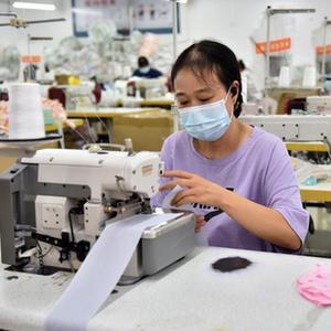 9月7日,工人在河北省临城县东镇镇北孟村一家母婴用品加工厂工作。