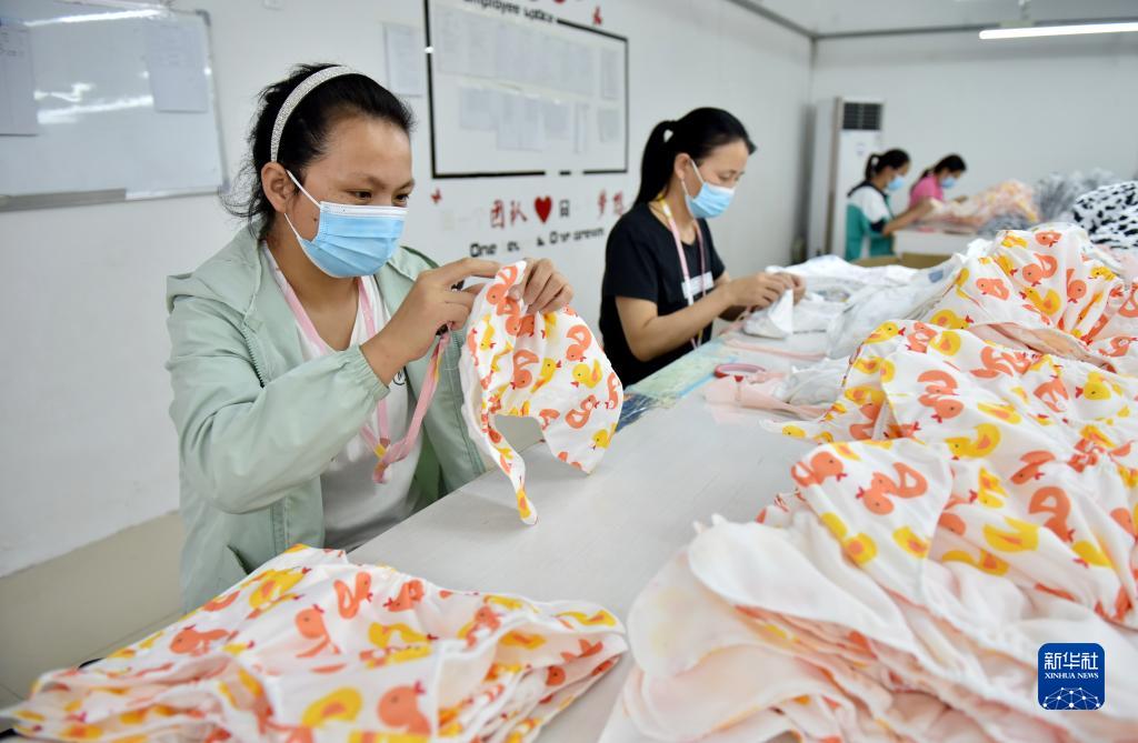 9月7日,工人在河北省临城县东镇镇北孟村一家母婴用品加工厂工作。