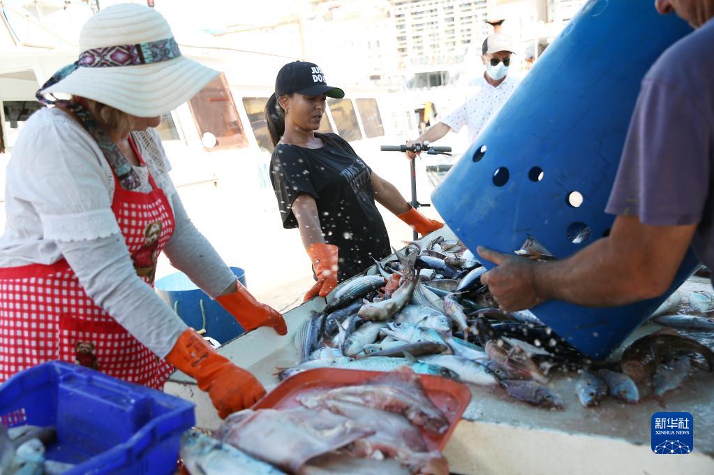 9月6日,渔夫在法国马赛老港的鱼市整理刚刚捕捞的渔获物。