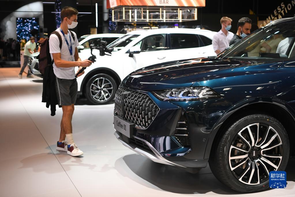 9月6日,在德国慕尼黑举办的德国国际汽车及智慧出行博览会媒体日期间,人们在魏牌汽车展台参观。