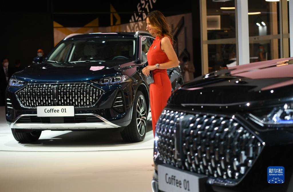 这是9月6日在德国慕尼黑举办的德国国际汽车及智慧出行博览会媒体日期间拍摄的魏牌摩卡PHEV车型。
