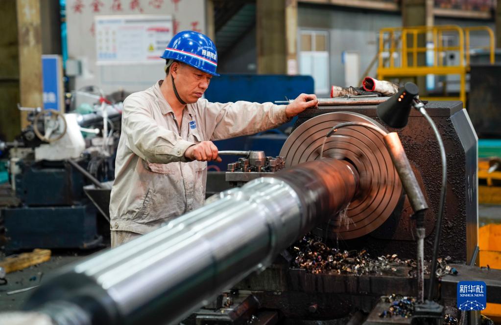 9月6日,中冶赛迪装备有限公司冶金装备生产车间内,一名工人操作设备对国产冶金装备的零部件进行加工。
