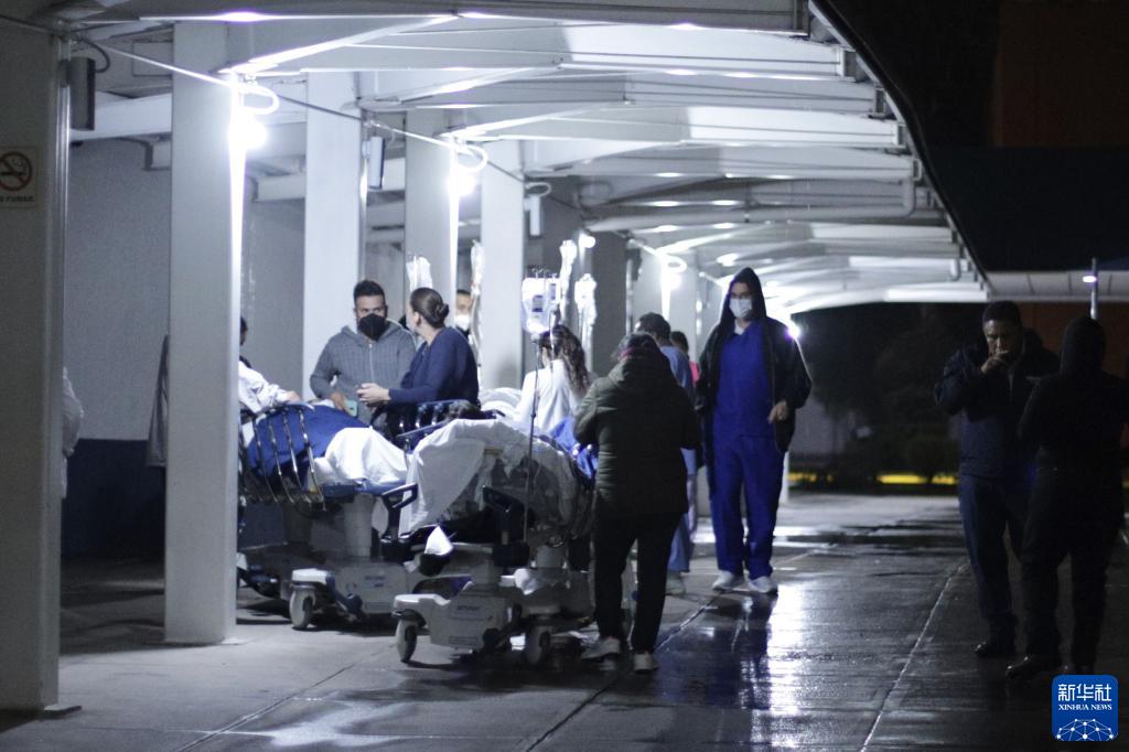 9月7日,在墨西哥首都墨西哥城,地震发生后一家医院的工作人员将病人转移到室外。