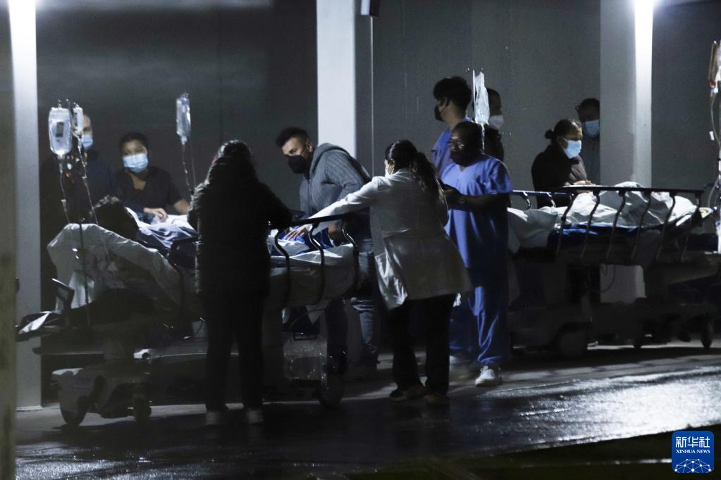 9月7日,在墨西哥首都墨西哥城,地震发生后一家医院的工作人员将病人转移到室外。