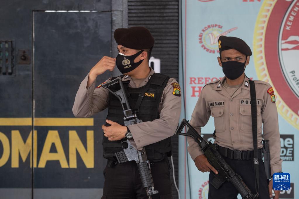9月8日,警察在印度尼西亚唐格朗一监狱门前警戒。