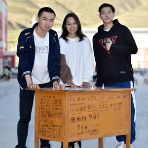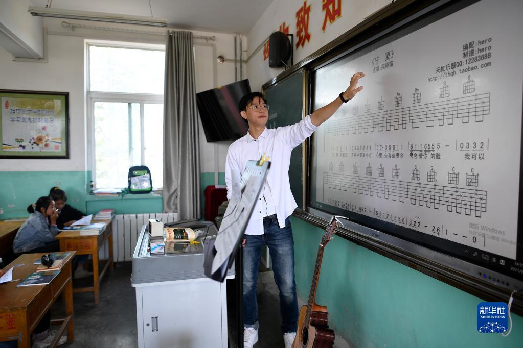 复旦大学第23届研究生支教团支教老师林伯韬在为学生上音乐课(9月2日摄)。