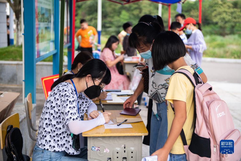 9月8日,在张家界市桑植县芙蓉学校,学生在办理入学登记。