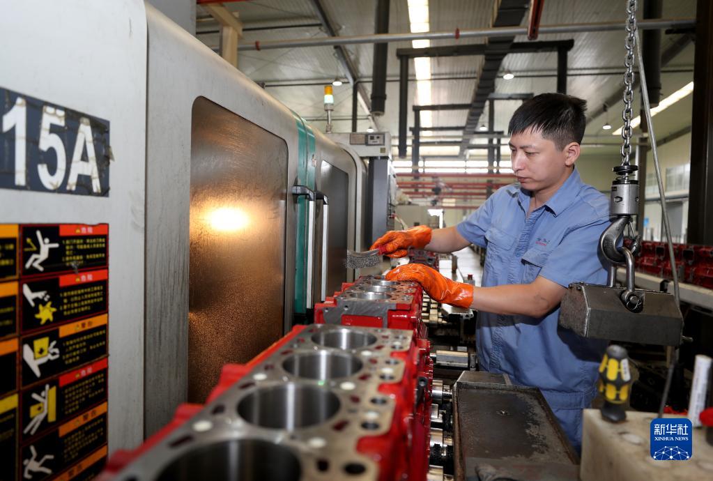 9月7日,在安徽全椒经济开发区,工人在一家装备制造企业生产柴油机缸体。