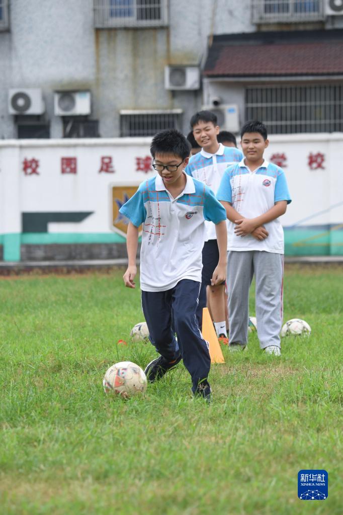 9月8日,织里镇轧村中学学生参加足球兴趣晚托班。