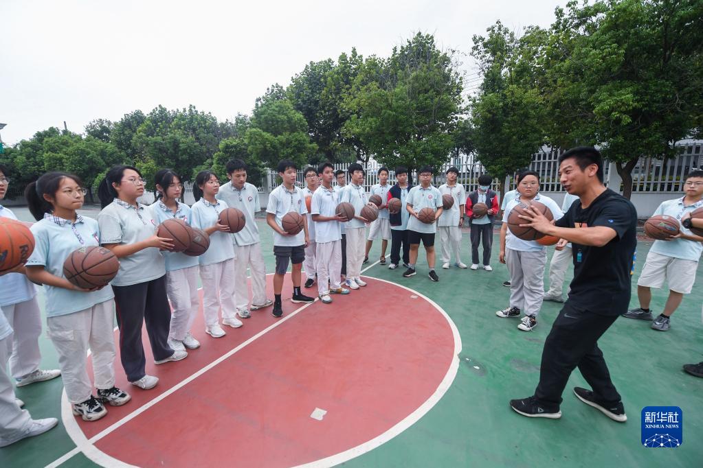 9月8日,织里镇轧村中学学生参加篮球兴趣晚托班。