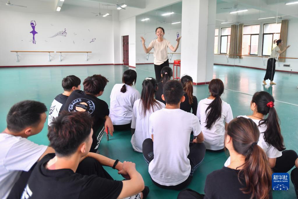 在长沙职业技术学院特殊教育学院的舞蹈房里,邓芸虹用手语为学生讲解舞蹈内容(9月7日摄)。