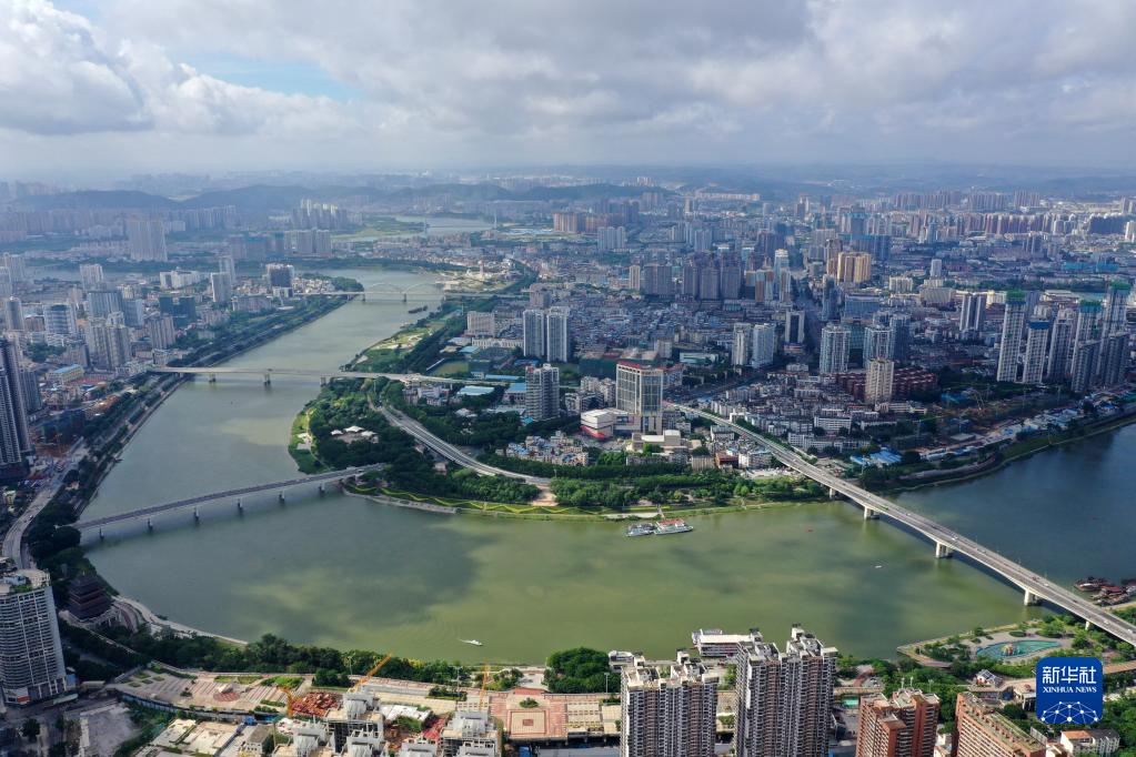 这是广西南宁市邕江及两岸城市景观(7月9日摄,无人机照片)。
