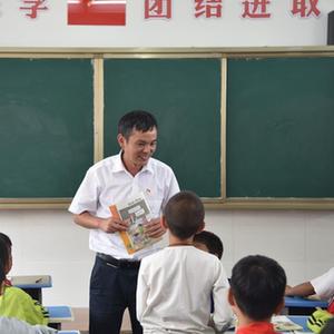 9月7日,杨明(中)在黔西市易地扶贫搬迁小区配套的锦绣学校组织学生开展大课间活动。