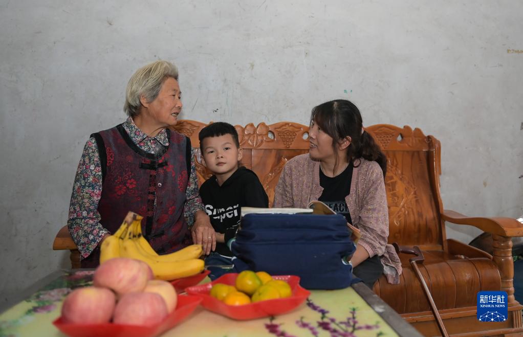 9月7日,李元芳(右)在一名学生家家访。