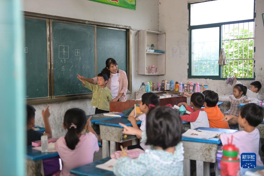 9月8日,李元芳在给孩子们上语文课。