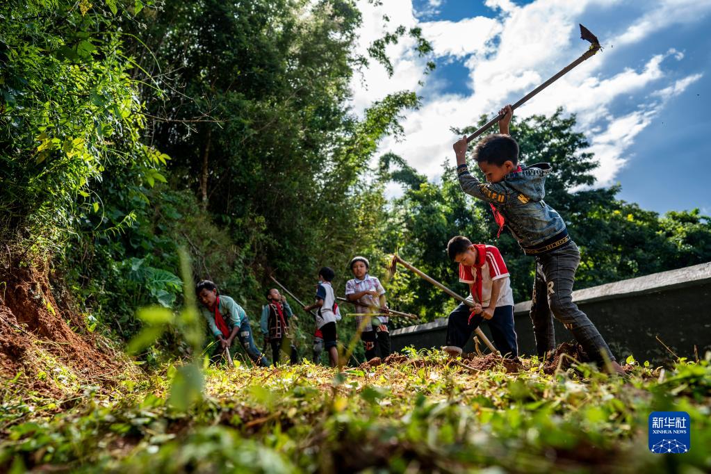 哈卜吗村小学的孩子们在学校菜园里劳动(9月7日摄)。 新华社记者 江文耀 摄