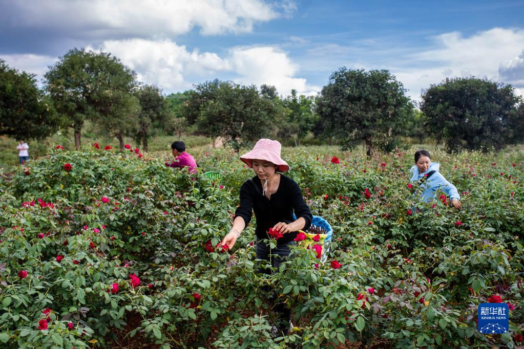 9月9日,云南省弥勒市弥阳街道小河边村村民在采摘鲜食玫瑰。
