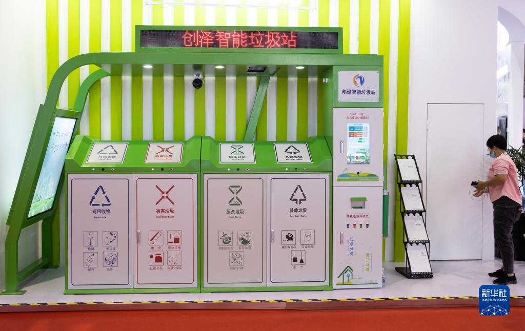这是9月10日在2021世界机器人博览会现场拍摄的智能垃圾站。