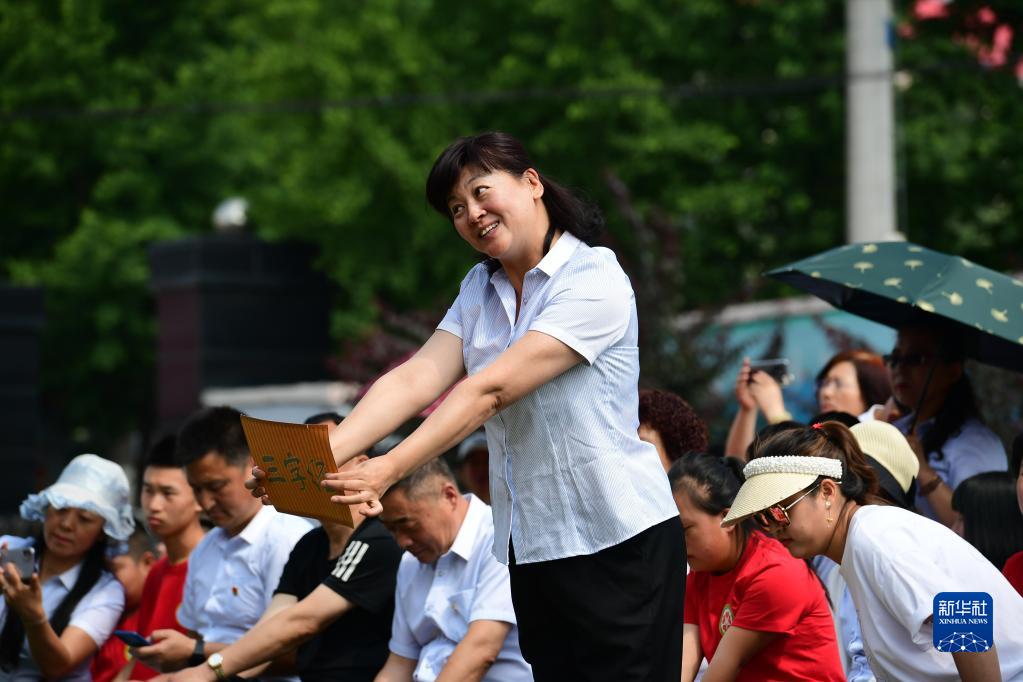 6月23日,凤城市特殊教育学校老师鲍芳芳在艺术节上带领学生表演古诗词歌舞节目。