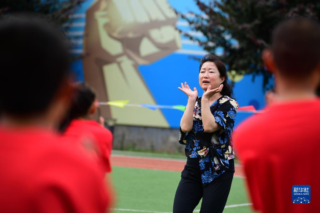 6月22日,凤城市特殊教育学校老师姜丽君带领学生排练歌舞节目。