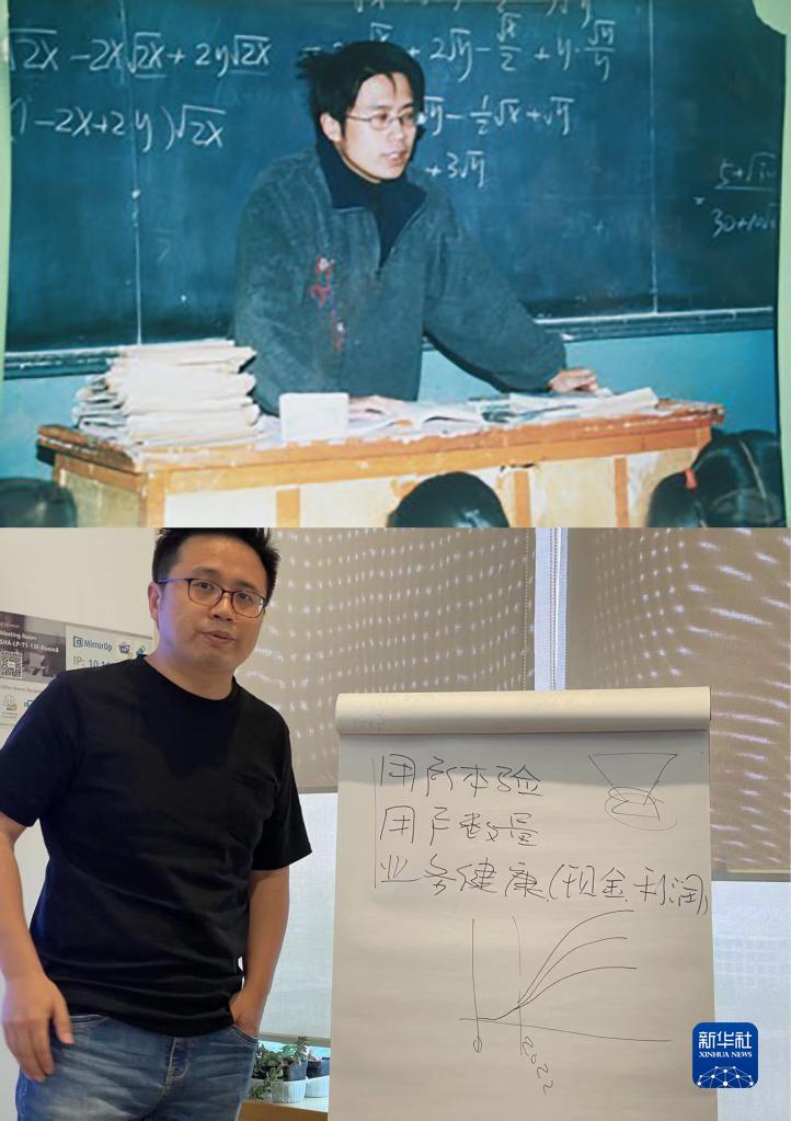 拼版照片:上图是第4届研支团队员汤恒晟支教时在西吉县三合中学讲课;下图是汤恒晟的近照。