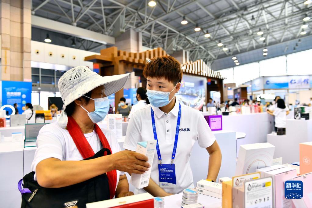 9月10日,在威海市国际展览中心,消费者在韩国(山东)进口商品博览会现场购买商品。